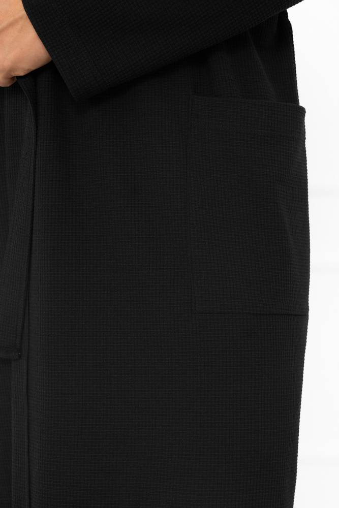 - Elegancki szlafrok męski z miękkiej dzianiny o tłoczonym wzorze. Komfortowy krój, pasek w talii i kieszenie zapewniają wygodę i styl każdego dnia.