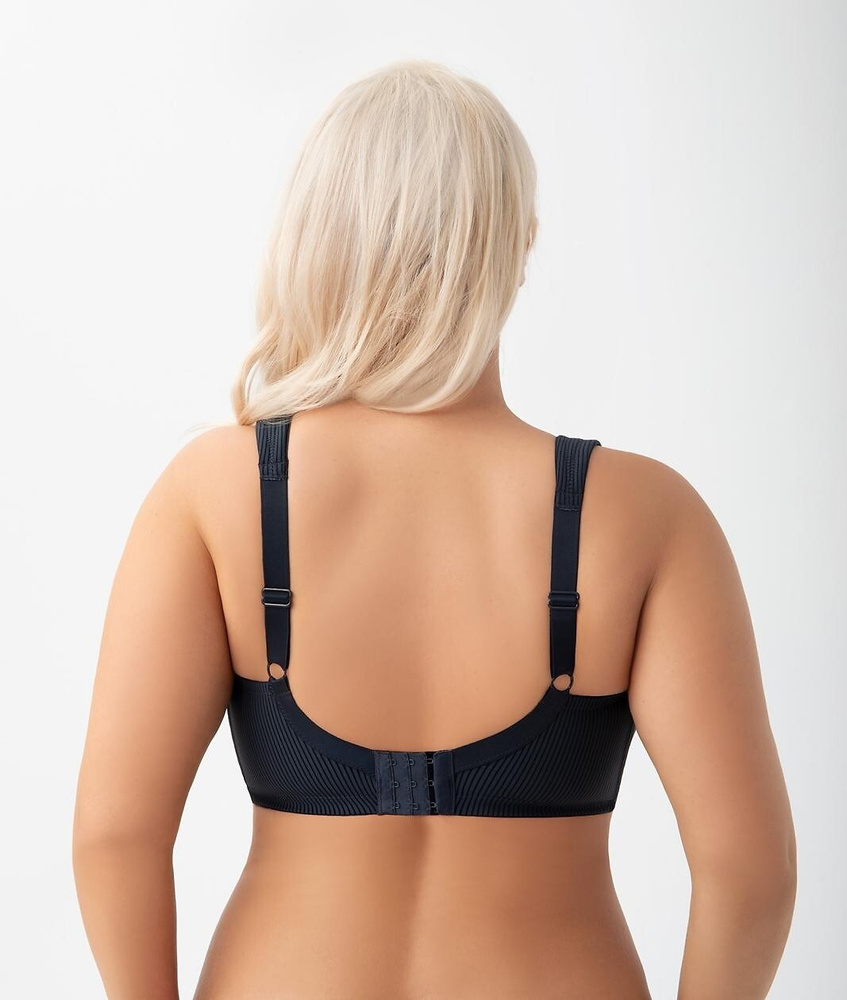 Dzięki specjalnej konstrukcji oraz wzmocnionym bokom z elastyczną fiszbiną, biustonosz gwarantuje stabilność i pewność podczas ruchu. Szerokie, regulowane ramiączka nie uciskają ramion, zapewniając wygodę nawet przy dłuższym noszeniu.