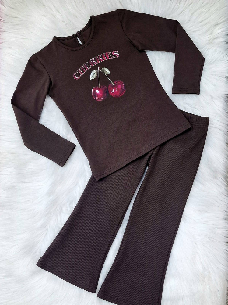 Bambarillo Cherries gorzka czekolada bluzka dziewczęca – długi rękaw, bawełna z elastanem