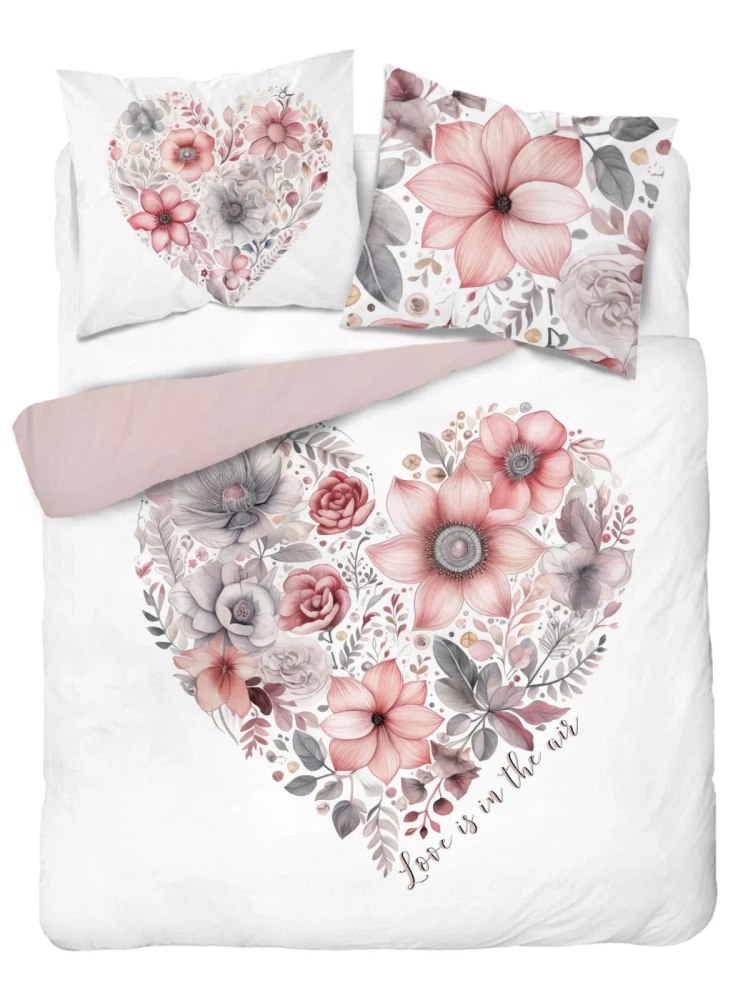 Detexpol Holland 5126 A pościel bawełniana biała z różowym sercem z kwiatów- dwustronna, naturalna, 100% bawełna
