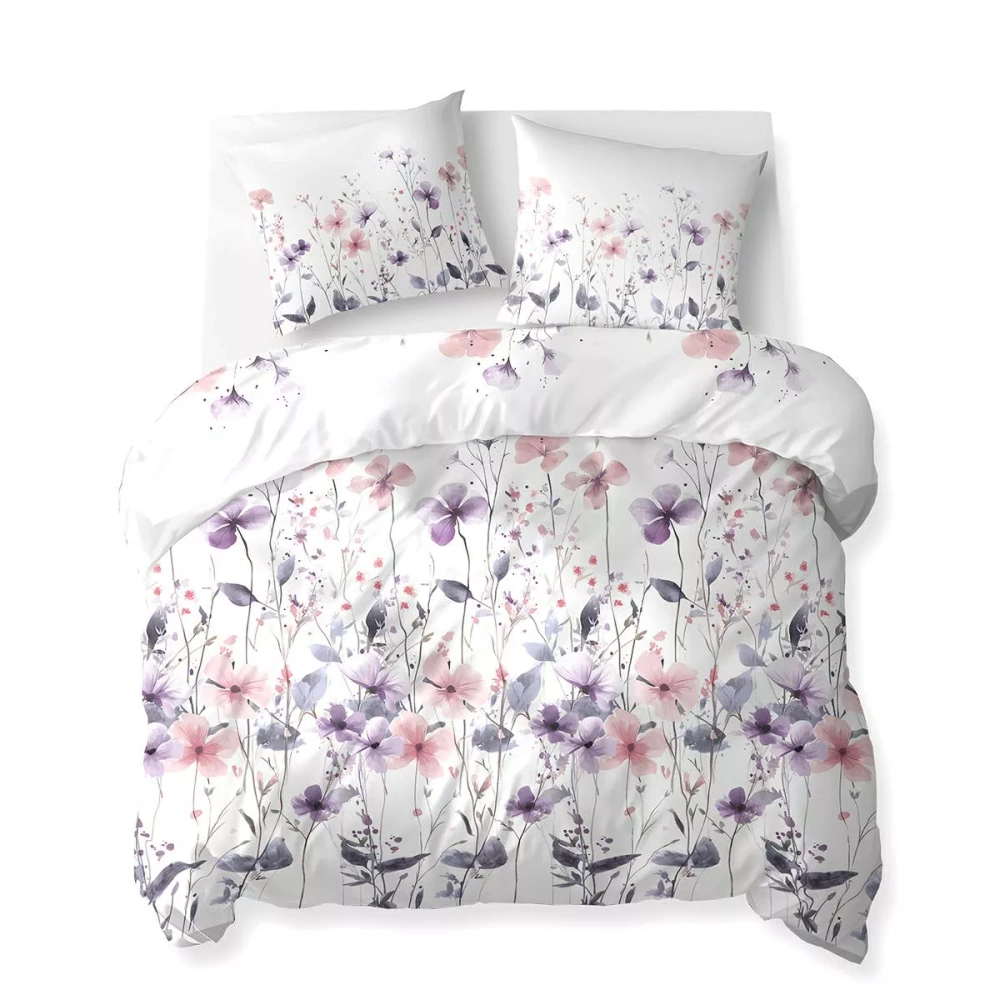 Detexpol Cotton Bloom 5773 B pościel bawełniana biała w polne kwiaty różowo-fioletowe– dwustronna, naturalna, 100% bawełna