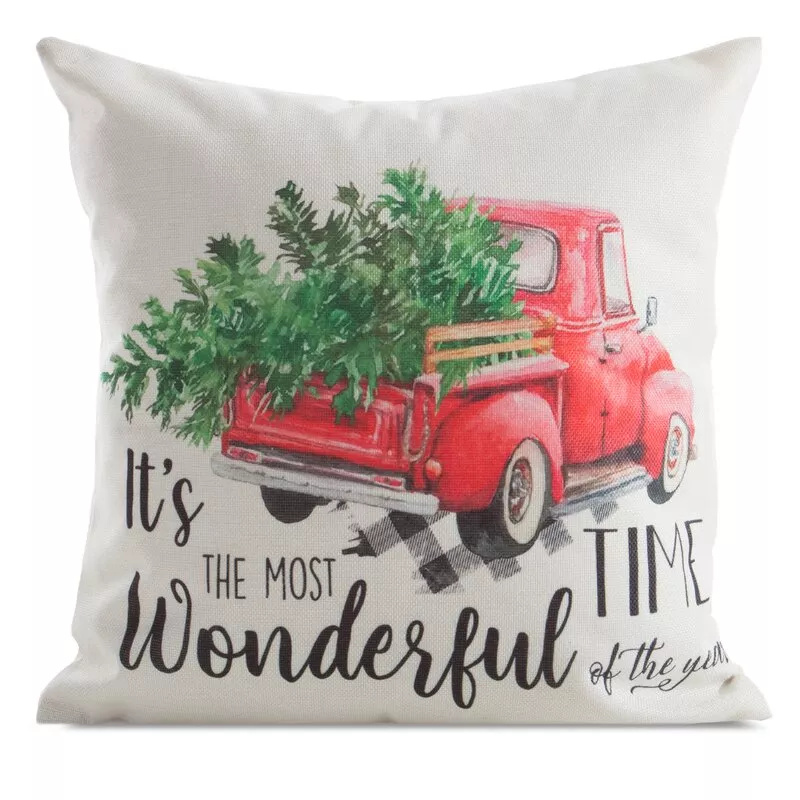 Eurofirany poszewka świąteczna CHP 226 – 45x45, biała z czerwonym autem i choinką