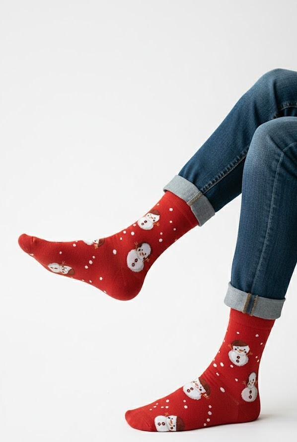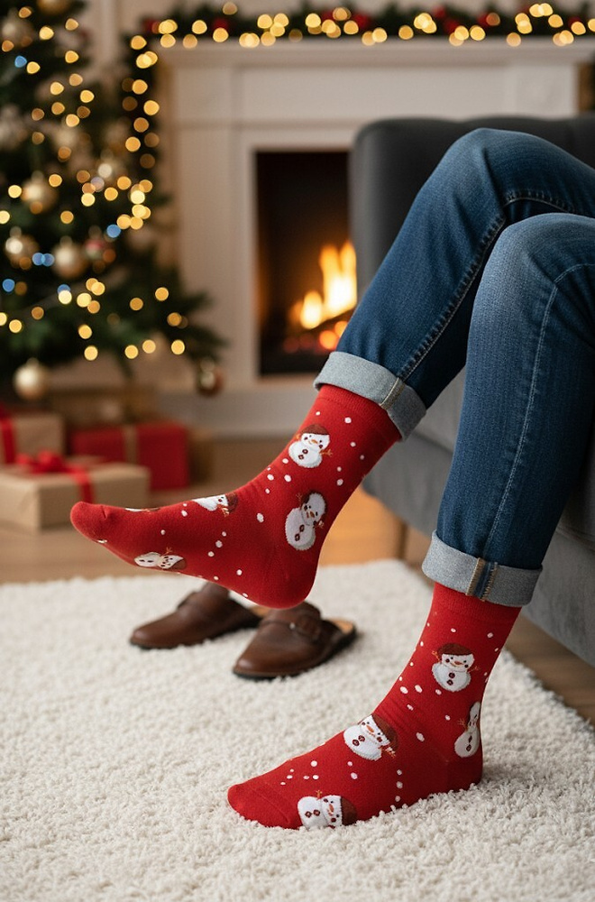 Skarpety zdobią oryginalne, świąteczne motywy, które przyciągają wzrok i wprowadzają wyjątkowy nastrój. Dzięki elastycznemu wykończeniu dobrze trzymają się na stopie, zapewniając komfort noszenia bez ucisku.
