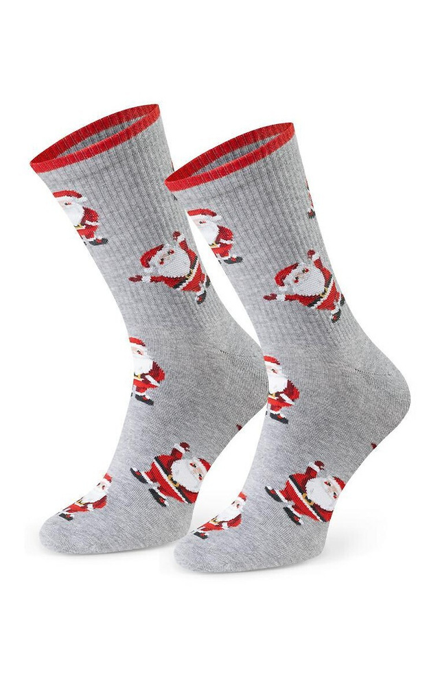 Skarpety zdobią oryginalne, świąteczne motywy, które przyciągają wzrok i wprowadzają wyjątkowy nastrój. Dzięki elastycznemu wykończeniu dobrze trzymają się na stopie, zapewniając komfort noszenia bez ucisku.