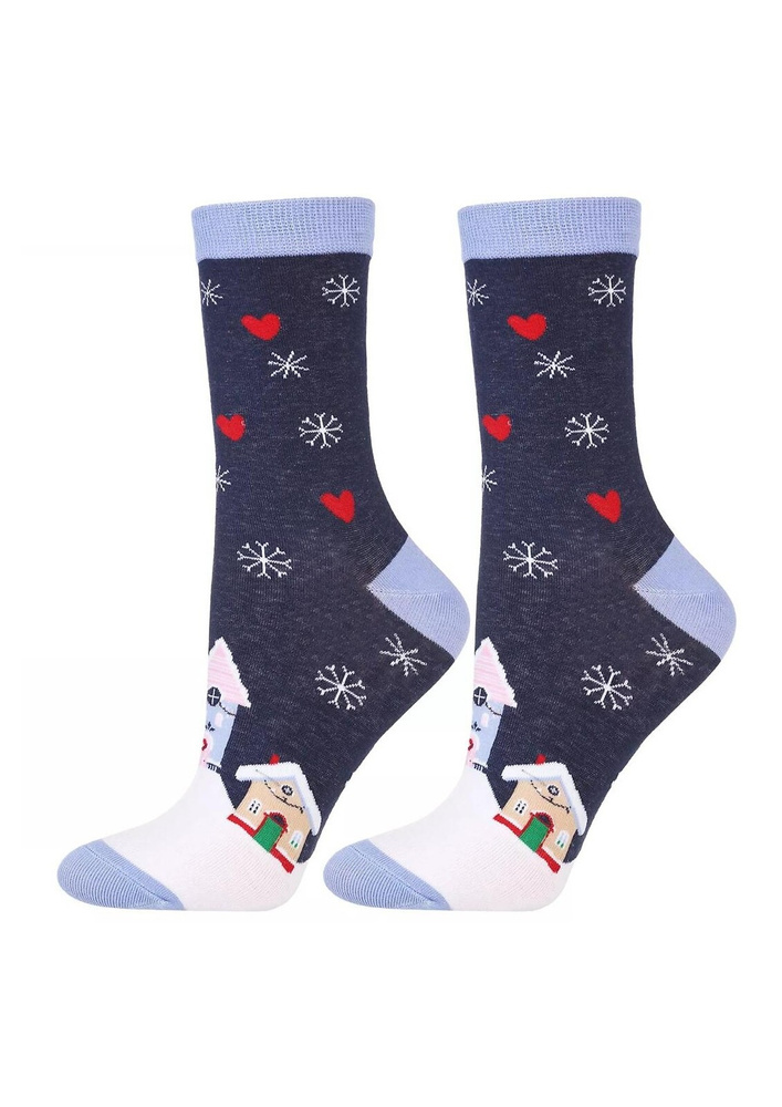 Każdy komplet zawiera dwie pary skarpet w kolorach granatowym i bordowym, ozdobionych uroczymi, świątecznymi wzorami. Płaskie szwy i elastyczny ściągacz zapewniają pełen komfort noszenia, bez ucisku i podrażnień.