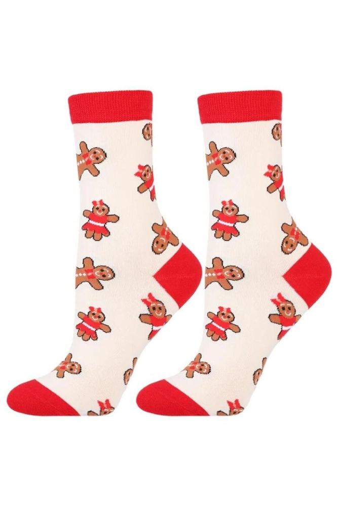 Skarpetki damskie Moraj CSLS300-046/2 czerwony/waniliowy– świąteczne, bawełniane, zestaw 2 par