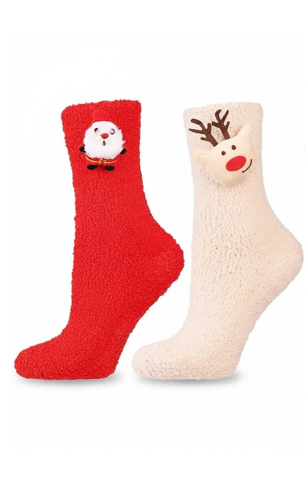Model ozdobiono uroczą aplikacją 3D, która nadaje im niepowtarzalnego, świątecznego charakteru. Dzięki antypoślizgowej podeszwie skarpetki są bezpieczne i praktyczne — idealne do chodzenia po domu.