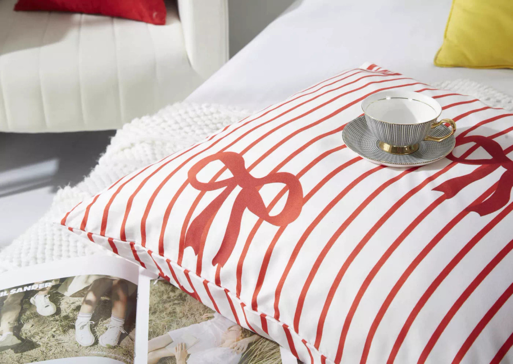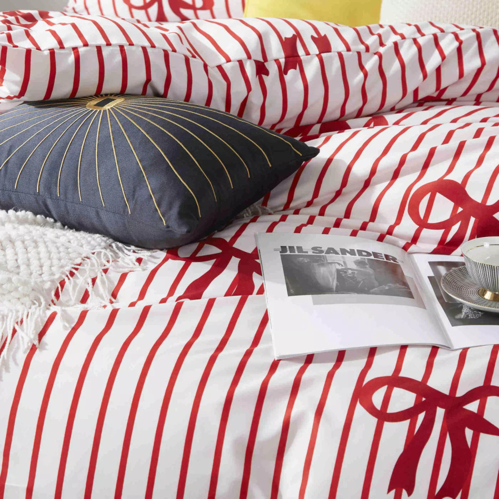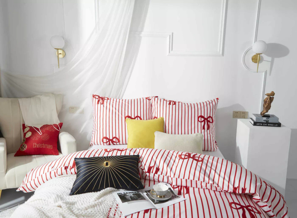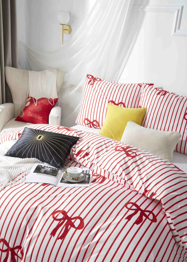 Spod Igły i Nitki Xmass Bow Pościel mikrosatynowa świąteczna I25 biała czerwona kokardy– miękka mikrofibra, zamek błyskawiczny