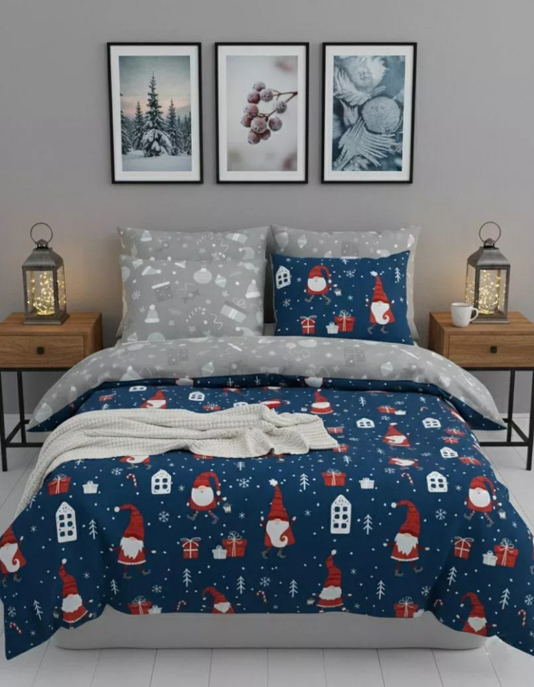 Dwustronny wzór pozwala odmieniać wygląd sypialni w kilka chwil, a świąteczna stylistyka nada wnętrzu ciepłego i wyjątkowego klimatu. Świetnie sprawdzi się jako prezent pod choinkę.