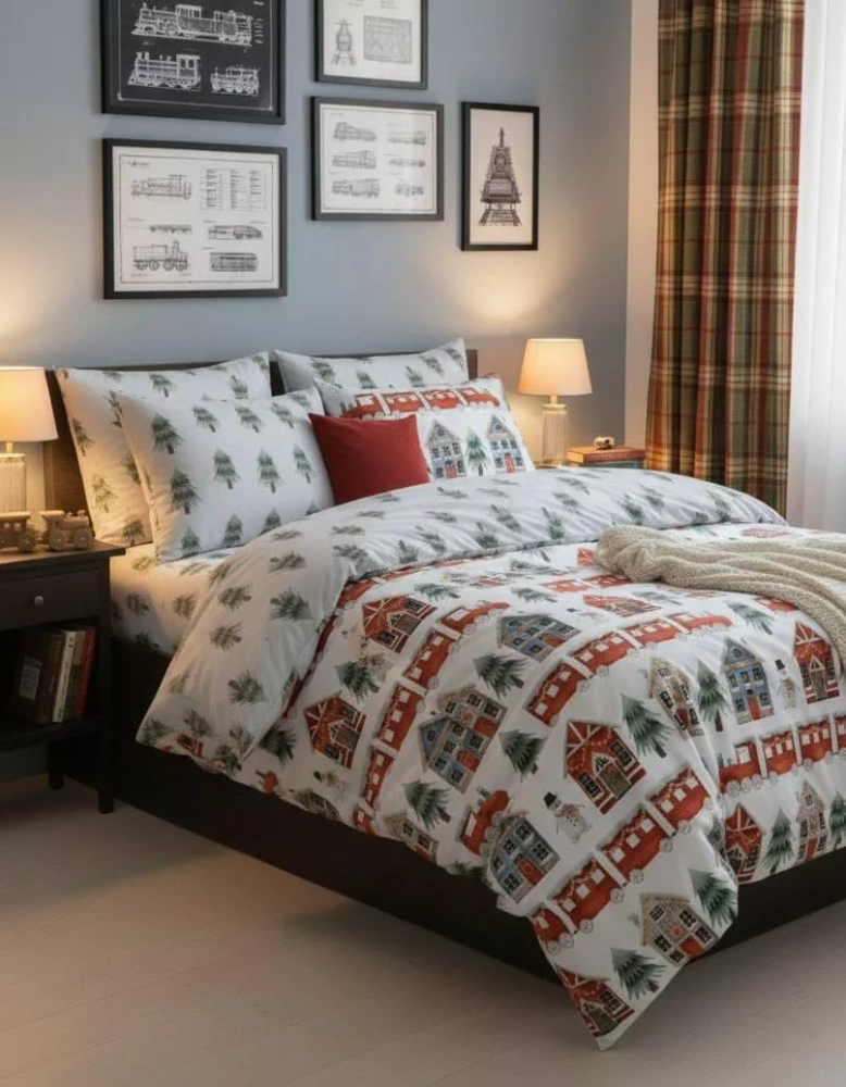 Dwustronny wzór pozwala odmieniać wygląd sypialni w kilka chwil, a świąteczna stylistyka nada wnętrzu ciepłego i wyjątkowego klimatu. Świetnie sprawdzi się jako prezent pod choinkę.