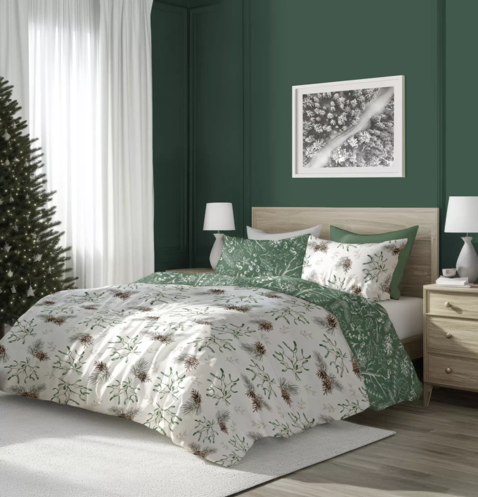 Dwustronny wzór pozwala odmieniać wygląd sypialni w kilka chwil, a świąteczna stylistyka nada wnętrzu ciepłego i wyjątkowego klimatu. Świetnie sprawdzi się jako prezent pod choinkę.