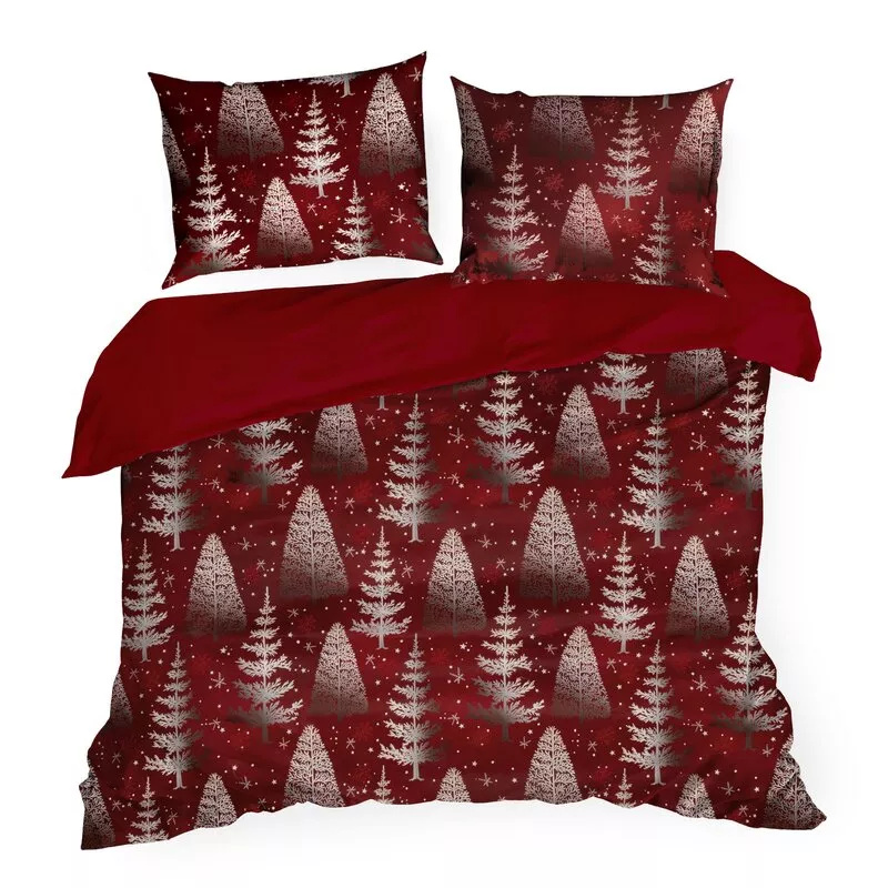Rubin Eurofirany Pościel świąteczna z mikrowłókna – czerwona biała choinki