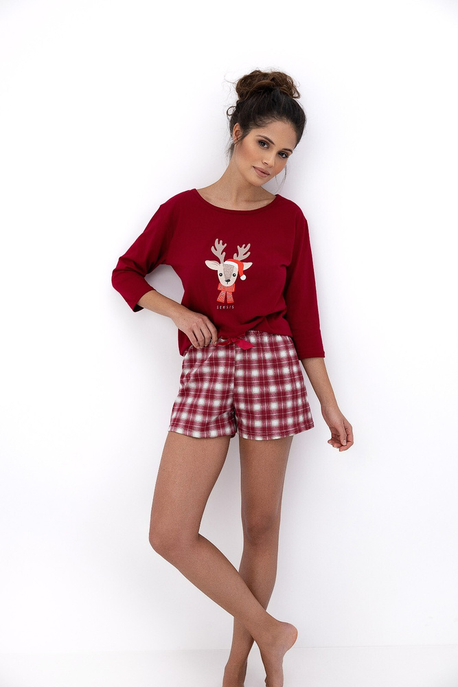 Elia Sensis – świąteczna bawełniana piżama damska z koszulką 3/4 i szortami w kratkę