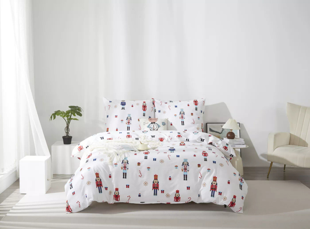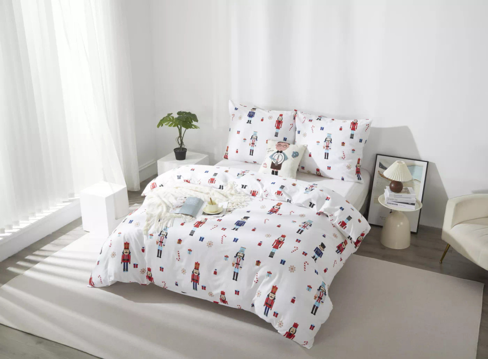 Świąteczna pościel satynowa z bawełny Xmass Spod Igły i Nitki dziadek do orzechów– gładka i elegancka