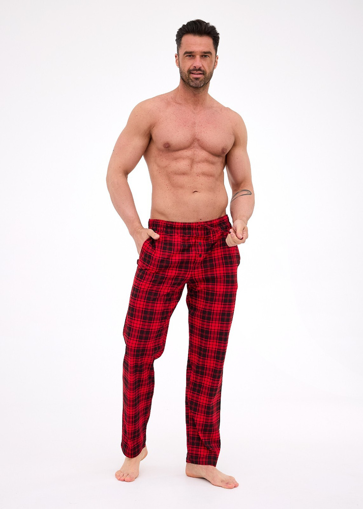 Męskie spodnie do spania Cornette 691/62– bawełniane, długie, kratka
