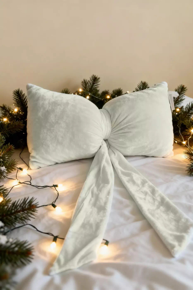 - Stylowa poduszka świąteczna w formie kokardy, wykonana z aksamitnego weluru. Biel i elegancki krój podkreślają świąteczny nastrój, a certyfikat Oeko-Tex potwierdza bezpieczeństwo użytych materiałów.