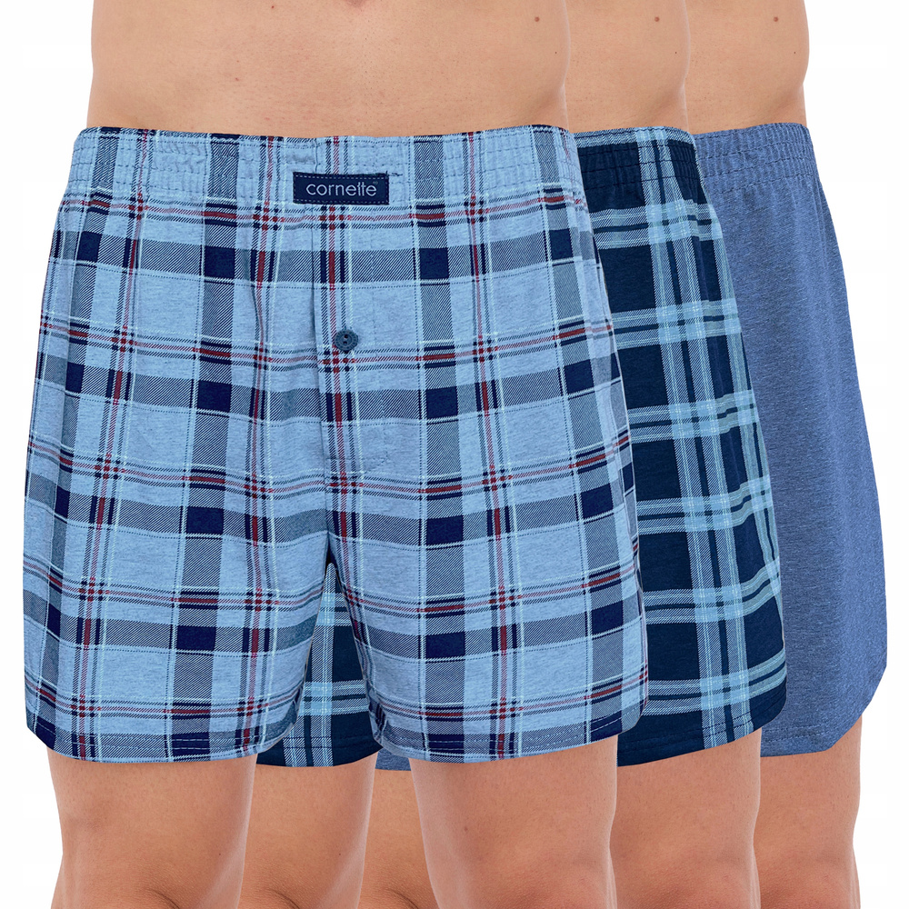 • Zestaw 3 bokserek Cornette 945/09 z czystej bawełny. Komfortowy, luźny krój, rozporek na guzik i elastyczna guma w pasie obszyta bawełną. Kolory: turkus, kratka turkusowa, granat.