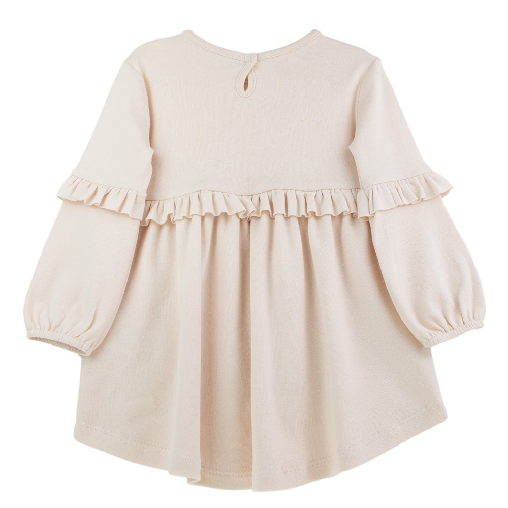 Sukienka Nicol 141973 – beżowa bawełniana, długi rękaw, falbanki