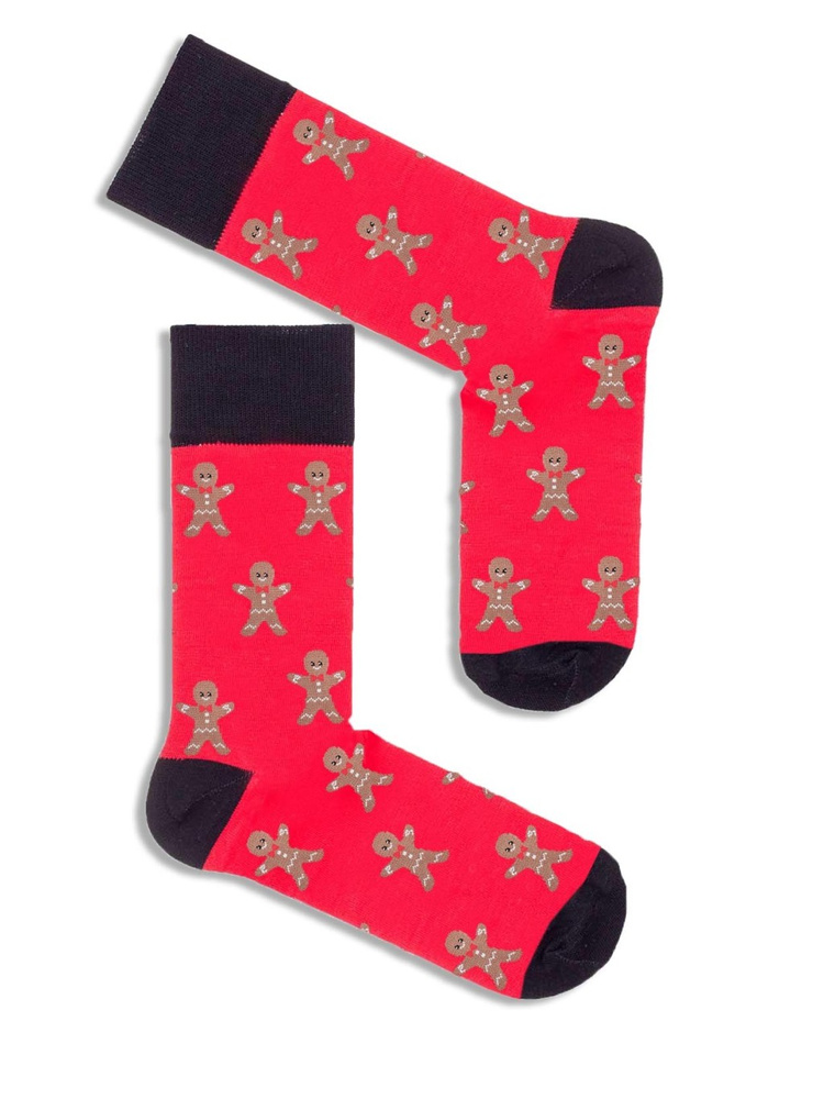 Skarpety męskie Milena 1290.015 – Ciastka, świąteczny wzór, czerwony