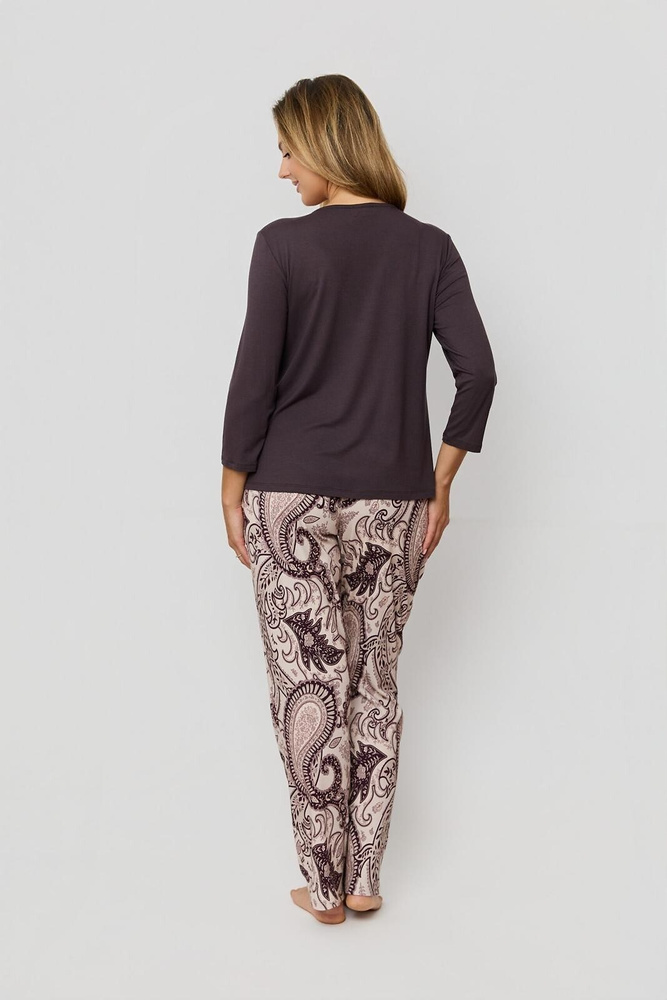 Piżama damska Iris PU83 Mefemi by Nipplex – wiskozowa koszulka 3/4 z dekoltem V + bawełniane długie spodnie z orientalnym wzorem, komfort premium