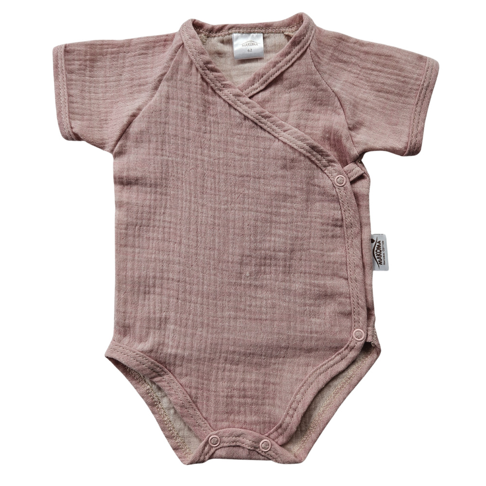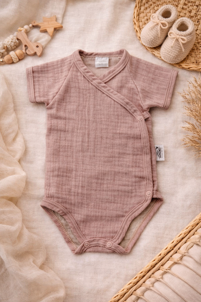 Body muślinowe Just Muslin Makoma rose– krótki rękaw, kopertowe, naturalne