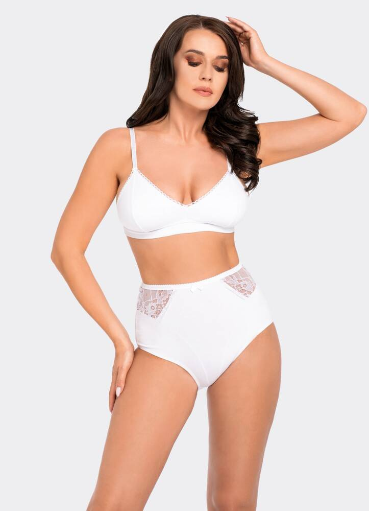 Przód zdobią delikatne koronkowe wstawki o kwiatowym wzorze.