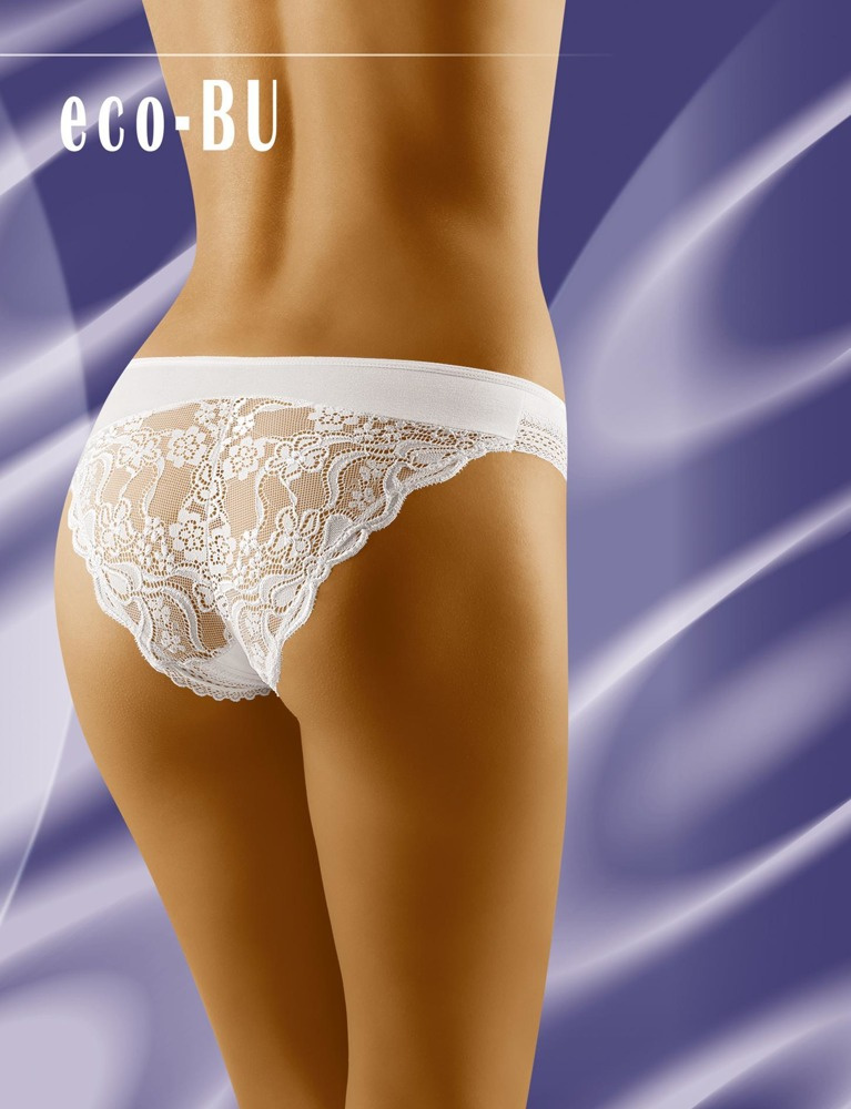 - Figi damskie z ażurowej koronki, z przodu bawełniana wstawka.