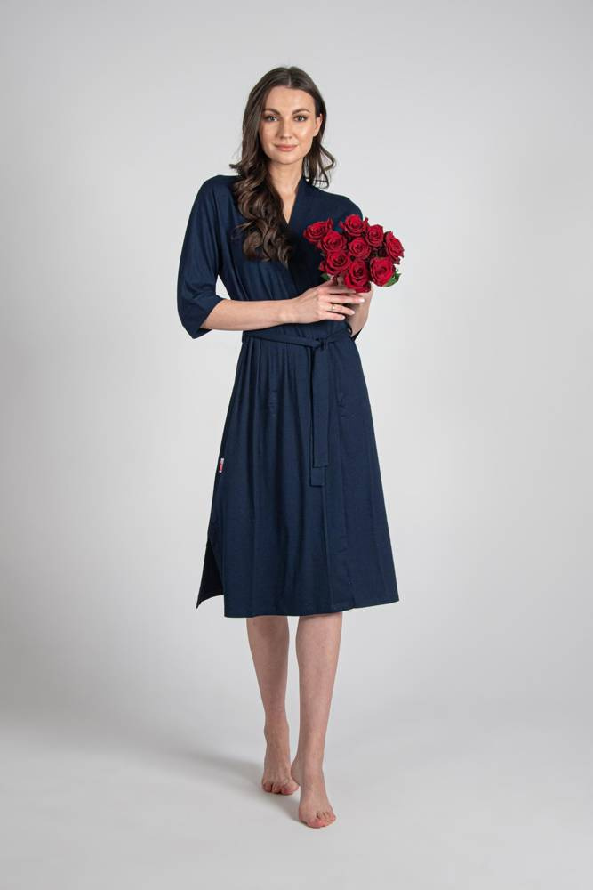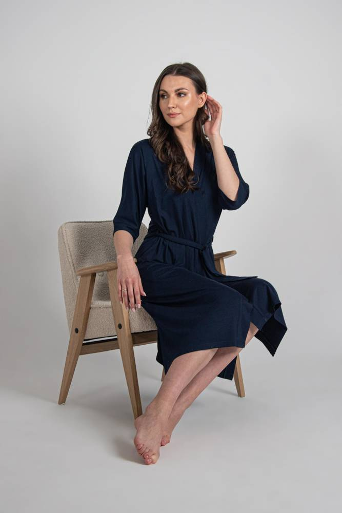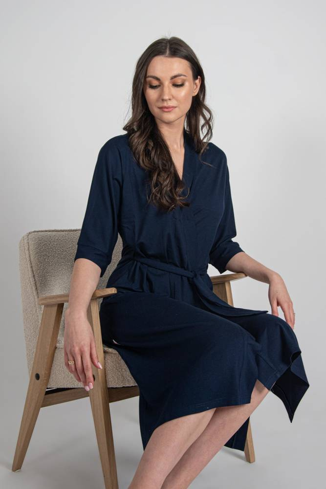 De Lafense Visa 942 – długi, lekki szlafrok damski z wiskozy, granat