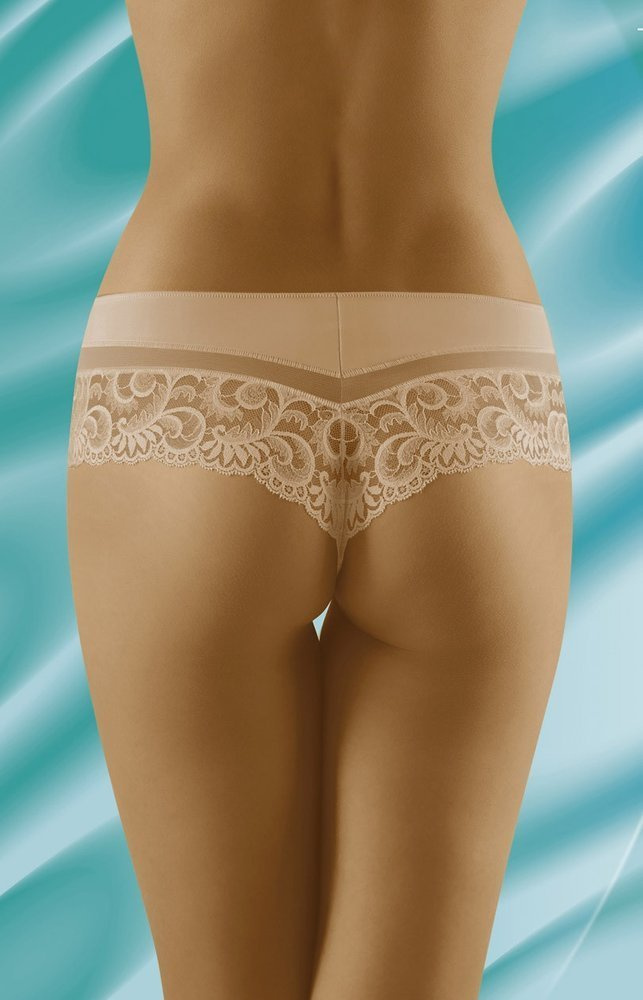 Oryginalne szorto-stringi zdobione koronką. Wstawka z przejrzystego tiulu zwiększa wizualną atrakcyjność modelu i nadaje mu lekkości.Skład: microfibra 83%, elastan 17%.