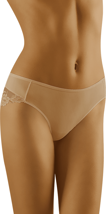 Figi z mikrofibry i kwiatowej koronki o obniżonej linii bioder. Płaskie obszycia zapewniają dyskrecję i komfort użytkowania.