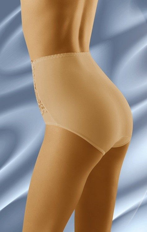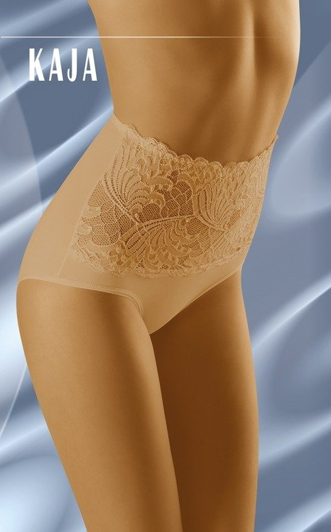 Figi damskie lekko modelujące sylwetkę - opinają brzuch, podkreślają linię talii. Wykonane z gładkiej mikrofibry i efektownej ażurowej koronki. Przyjemne w dotyku i bardzo wygodne.