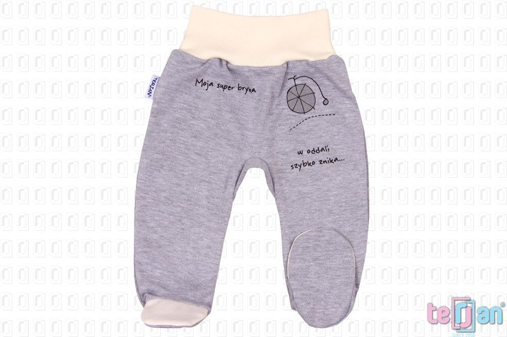 Półśpiochy z oryginalnymi nadrukami i napisami. Wykonane z wysokogatunkowej bawełny, wykończone szerokim pasem z bawełnianego ściągacza, który nie uciska brzuszka dziecka. Idealne w zestawieniu z body z kolekcji BIKE.
