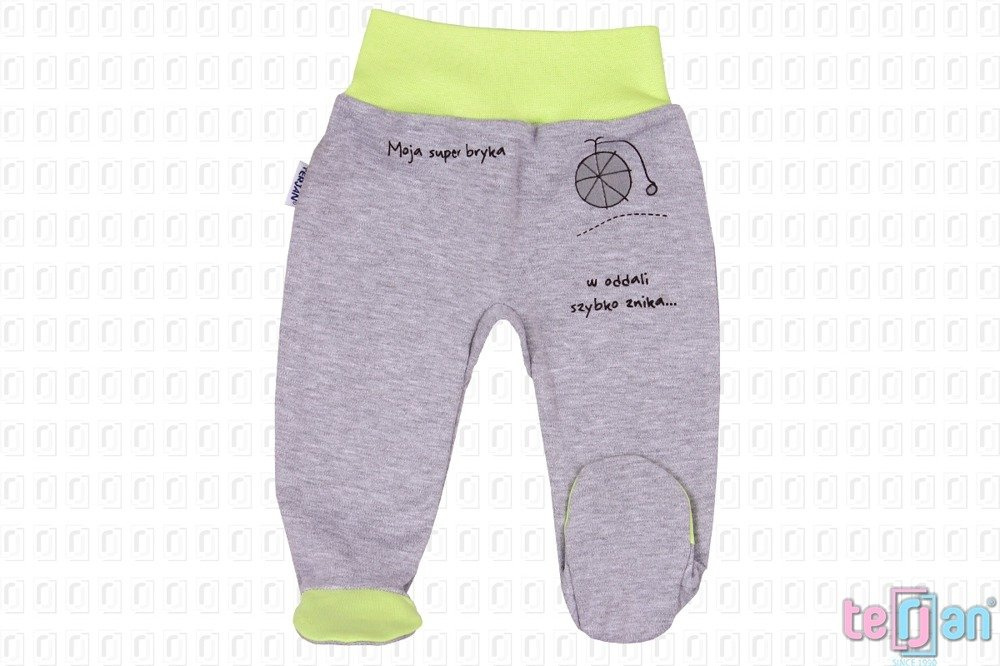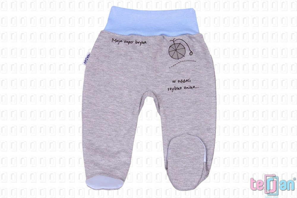 Półśpiochy z oryginalnymi nadrukami i napisami. Wykonane z wysokogatunkowej bawełny, wykończone szerokim pasem z bawełnianego ściągacza, który nie uciska brzuszka dziecka. Idealne w zestawieniu z body z kolekcji BIKE.