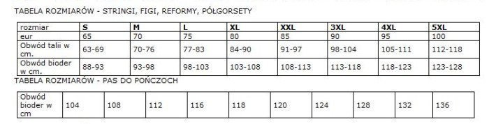 | Rozmiar | Obwód w talii | Obwód bioder |