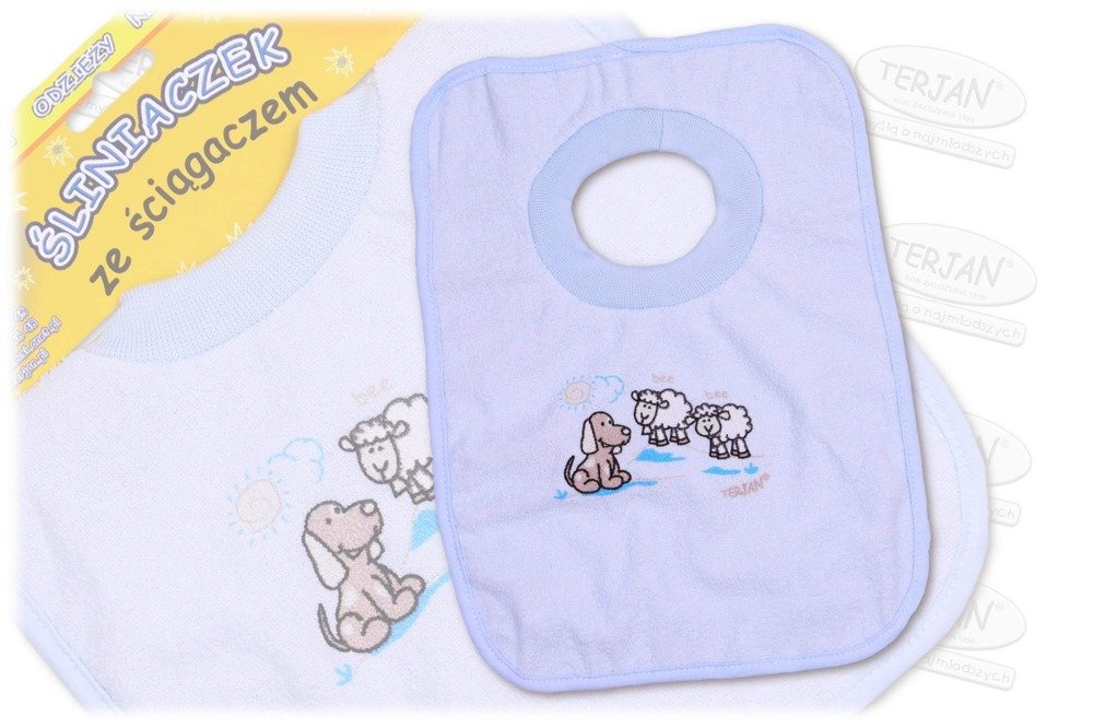 Produkt marki Terjan wykonany jest z 100% bawełny frotte. Podszycie śliniaka to miękka nieprzemakalna ceratka, która zabezpiecza ubranie przed zabrudzeniem. Kolorowe nadruki przyciągają uwagę maluszka podczas posiłku. Śliniaczek zakładany jest przez główkę Maleństwa, zamiast tradycyjnego wiązania posiada delikatny ściągacz.