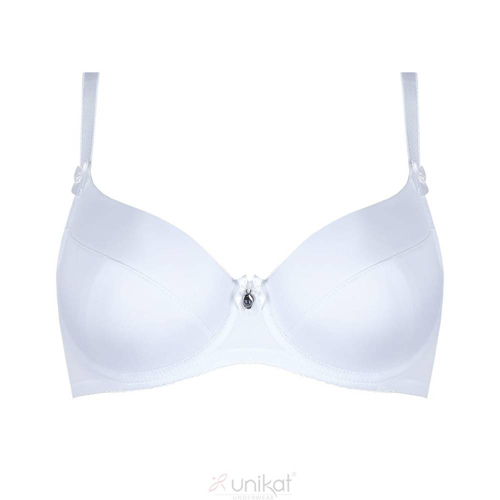 Elegancki model biustonosza z usztywnianymi miseczkami perfekcyjnie podtrzymującymi biust. Biustonosz wykonany jest z przyjemnego w dotyku materiału sprawiającego iż idealnie dopasowuje się do ciała. Usztywniona miseczka biustonosza efektownie uwydatnia biust podnosząc go mocno do góry oraz zapewnia stabilne podtrzymanie biustu i komfort noszenia. Gładkie miseczki biustonosza sprawiają iż jest on niezwykle funkcjonalny i idealnie nadaje do noszenia pod dopasowane ubrania.