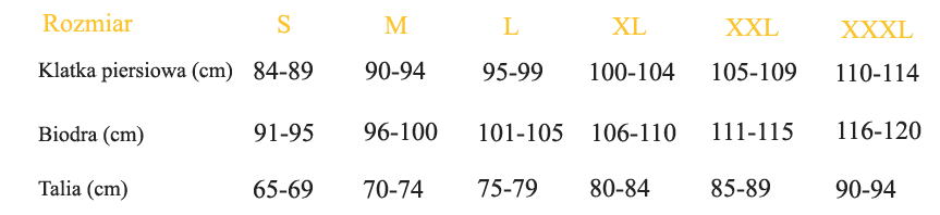 Rozmiar | Klatka piersiowa | Biodra | Talia |