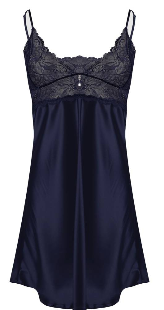 Efektowna koszulka damska z delikatnej i przyjemnej dla ciała satyny na cienkich ramiączkach. Z pozoru prosta, lecz tak naprawdę jest bardzo wyrafinowaną bielizną. Miseczki oraz pas pod biustem i górna część pleców ozdobione elegancką koronką. Na łączeniu miseczek znajduje się błyszczący element biżuteryjny. Skład: 100% poliester.