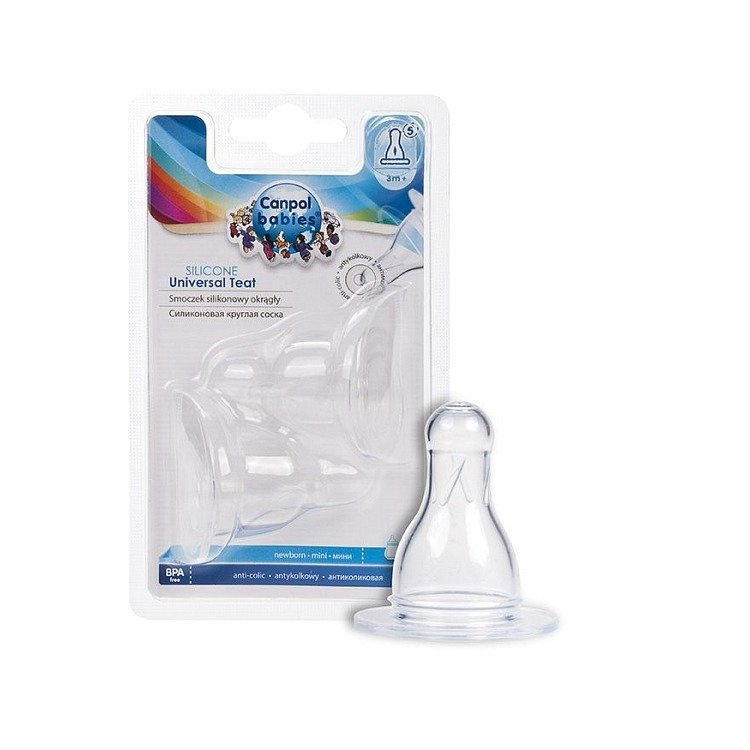 Do butelek z szeroką szyjką został specjalnie zaprojektowany antykolkowy smoczek. Wykonany jest z wysokiej jakości miękkiego silikonu. Zbliżony do kształtu piersi umożliwia łączenie naturalnego karmienia z karmieniem butelką. Występuje w 6 wielkościach przepływu: mini, wolny, średni, szybki, kaszka, trójprzepływowy. Odpowietrzacz umieszczony w podstawie, sprawia, że w trakcie karmienia dziecko nie łyka powietrza i jest mniej narażone na kolkę.
