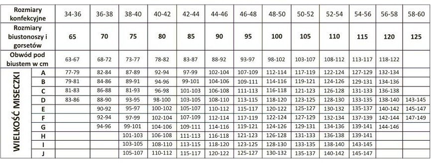 80 E (DD) obwód pod biustem: 78- 82 cm, obwód w biuście 100-102 cm