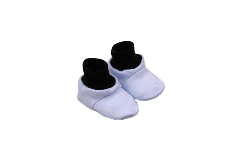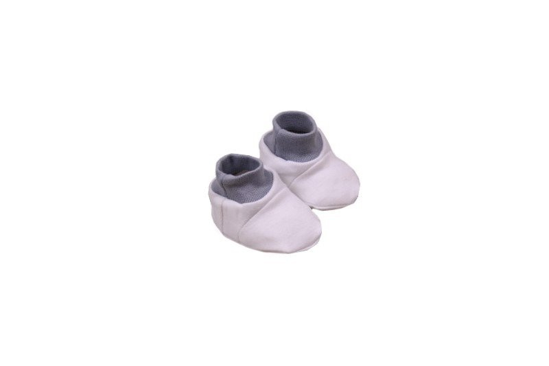 Bawełniane buciki niemowlęce  ze ściągaczem z miękkiej i przyjemnej w dotyku bawełny. Niezbędne w wyprawce dla noworodka. Idealnie pasują do czapeczek oraz innych ubranek z tej kolekcji.