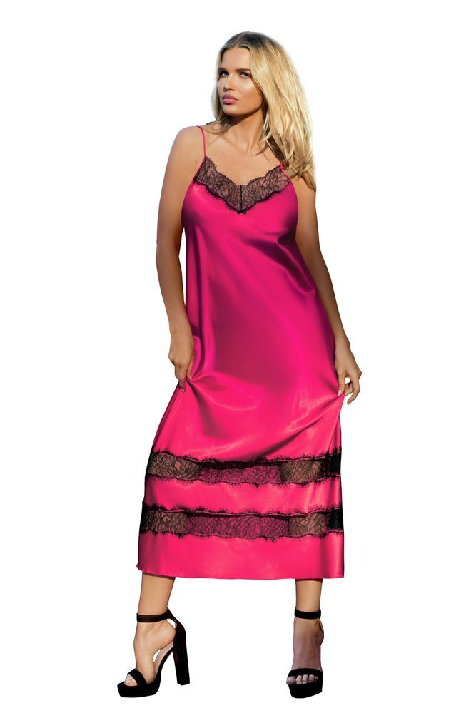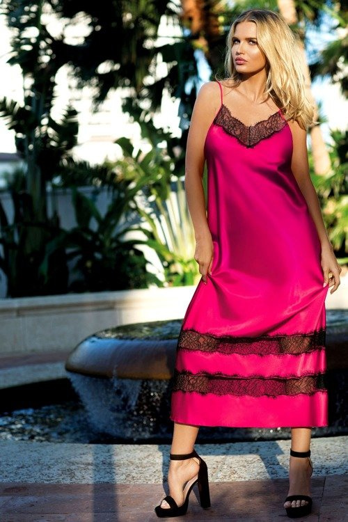 Gustowna koszulka nocna wykonana z zwiewnej, delikatnej dla ciała satyny. Regulowane ramiączka dzięki którym można uzyskać odpowiednio odkryty dekolt. Koronkowe zdobienia dodają elegancji.