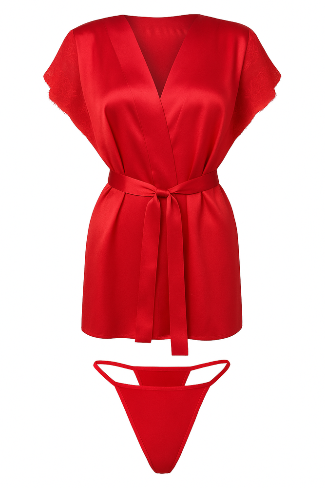 Satynowa zwiewna podomka w komplecie ze stringami.