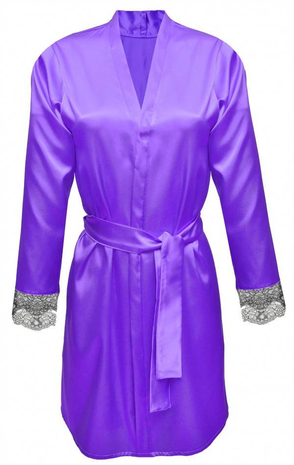 Podomka wykonana z lejącej satyny, o komfortowym kroju jest obowiązkowym elementem garderoby eleganckiej kobiety i sprawdzi się w każdej sytuacji. Efektowne rękawy zakończone śliczną, delikatną koronką. Ta krótka elegancka satynowa podomka posiada pasek, który seksownie podkreśla talię.