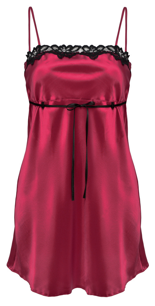 Zmysłowa satynowa haleczka, z ozdobnym przodem z czarnej koronki, pod biustem wiązana kokardką.