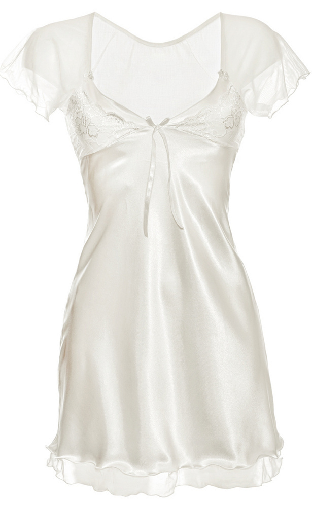 Zmysłowa satynowa haleczka z krótkim rękawem, profilowane miseczki z haftowanej koronki podszyte satyną dodają halce powabnego, romantycznego wyglądu, z przodu przyozdobiona kokardką.
