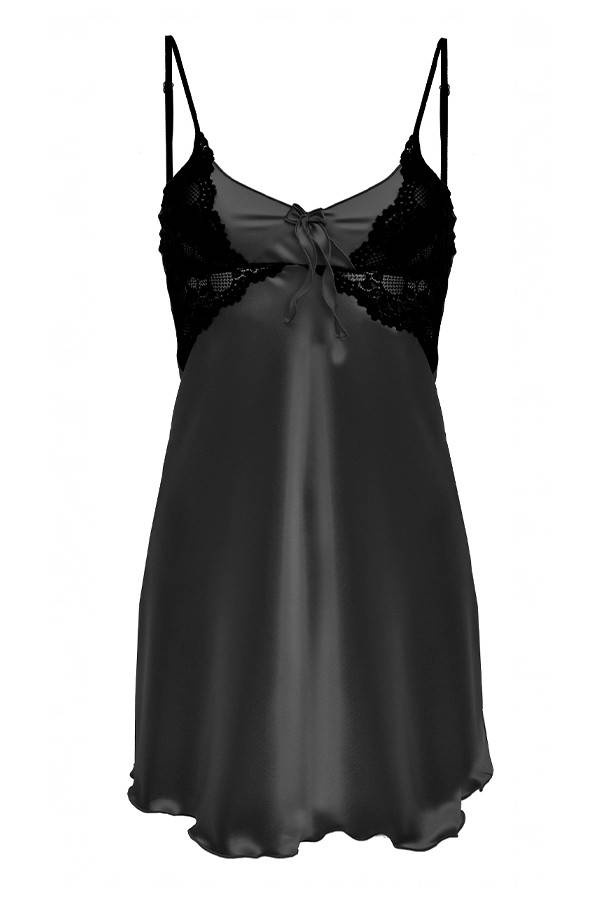 Zmysłowa satynowa haleczka, przód halki tworzą profilowane miski z delikatnej czarnej koronki podszytej satyną, przyozdobiony jest romantyczną kokardką.