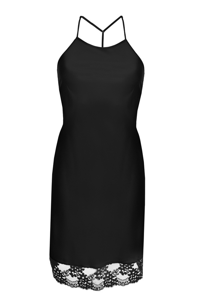 Zmysłowa satynowa haleczka. Przód lamowany z wyciętym tyłem przyozdobionym delikatną koronką. Ramiączka cienkie regulowane tworzące literę Y na plecach. Dostępna w różnych kolorach z czarną koronką.