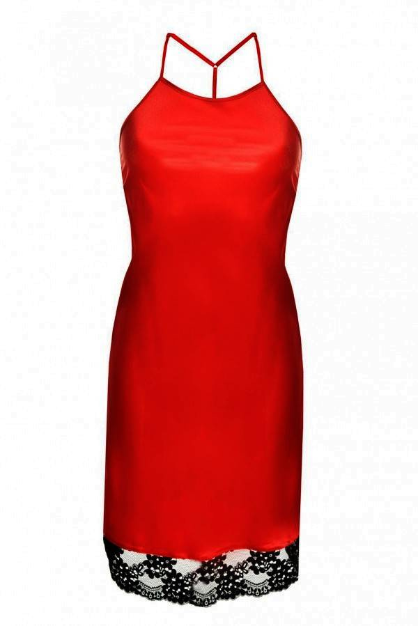 Zmysłowa satynowa haleczka.  Przód lamowany z wyciętym tyłem przyozdobionym delikatną koronką. Ramiączka cienkie regulowane tworzące literę Y na plecach. Dostępna w różnych kolorach z czarną koronką.