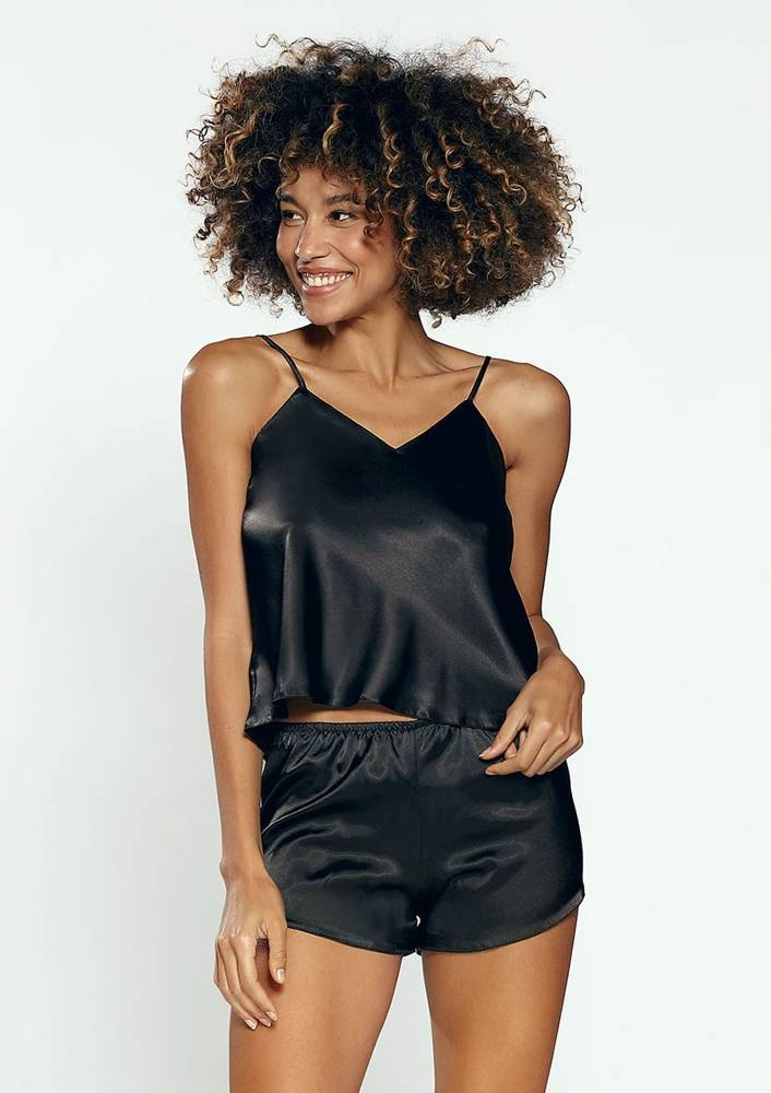 Karen Komplet piżamka damska satyna DKaren - czarny